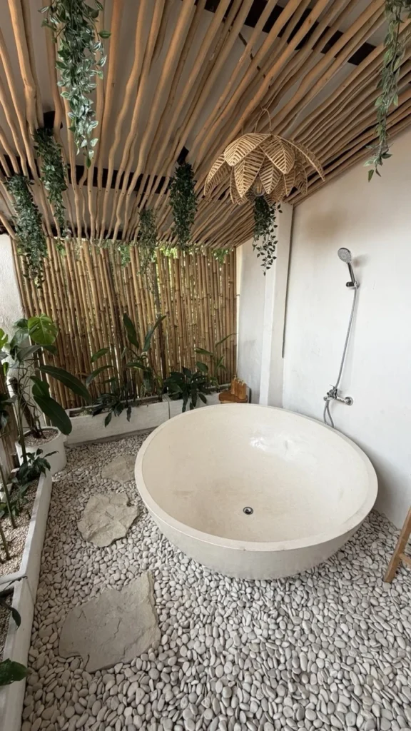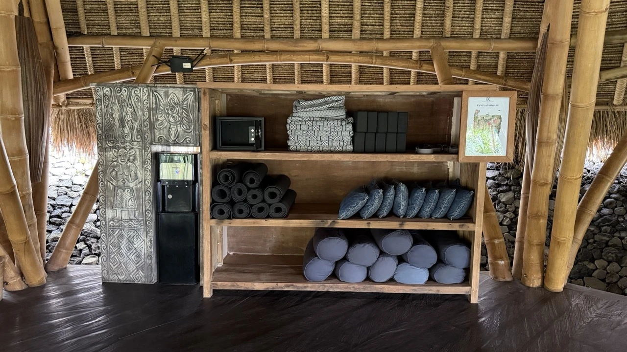 Wake up to golden light streaming through bamboo and coconut palms. Wander pathways that open into quiet meditation corners. Practice in a dedicated yoga shala surrounded by jungle sounds. Between sessions, guests can relax by shared pools, gather in open communal spaces, or enjoy nourishing meals overlooking the landscape.
